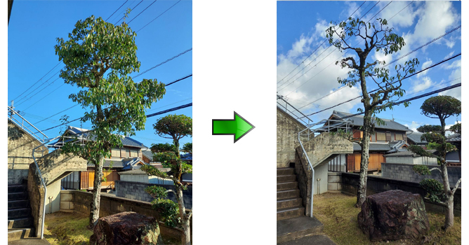伸びすぎた葉や枝を刈り取り、美しい見た目と、植木を元気にします。